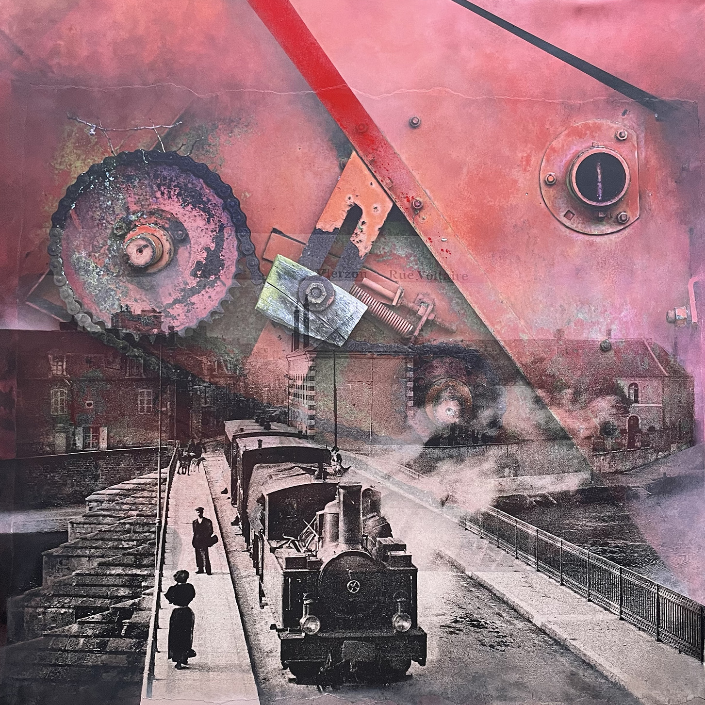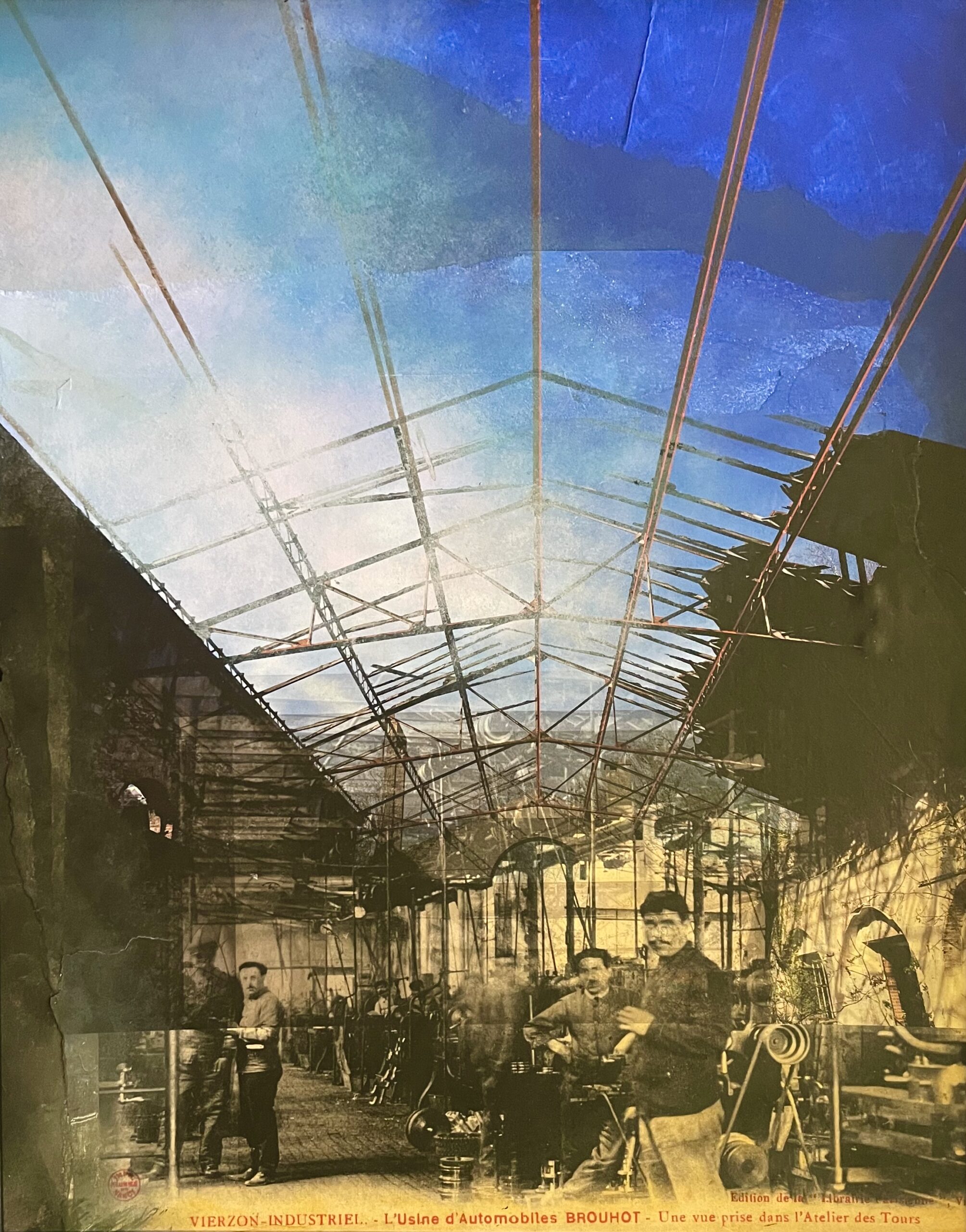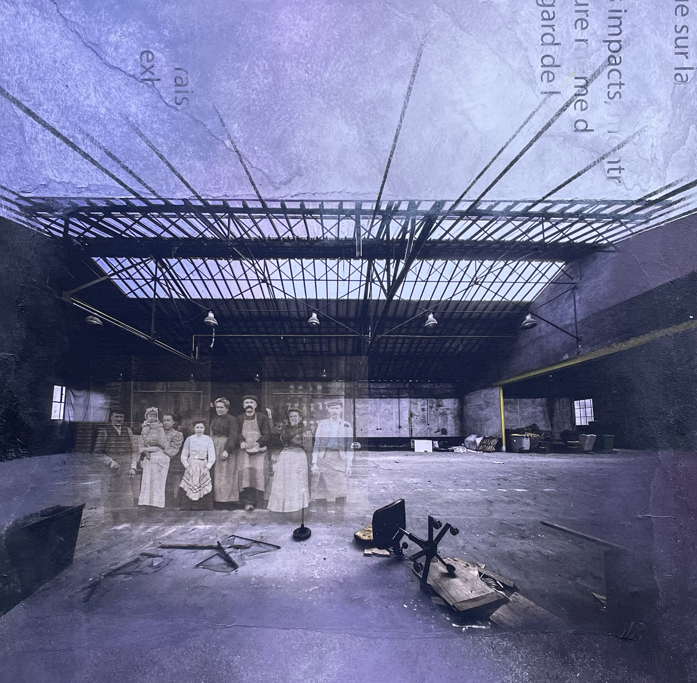 Dans cette parenthèse, j’ai pris des libertés avec les strates du temps, et calé mon pas sur les empreintes de celles et ceux qui ont arpenté les mêmes rues, les mêmes quais, les mêmes rêves. Ils sont devenus les personnages principaux de mes toiles et de mes pensées, cette ouvrière au regard malicieux, ce vanneur aux aguets, ces ouvriers avec leur marteau pilon, ces commerçants posant fièrement sur le pas de leur porte, ces enfants jouant dans les rues, cette femme attendant le tramway sous son ombrelle, ces hommes faisant une pause pendant la construction du pont de Toulouse…